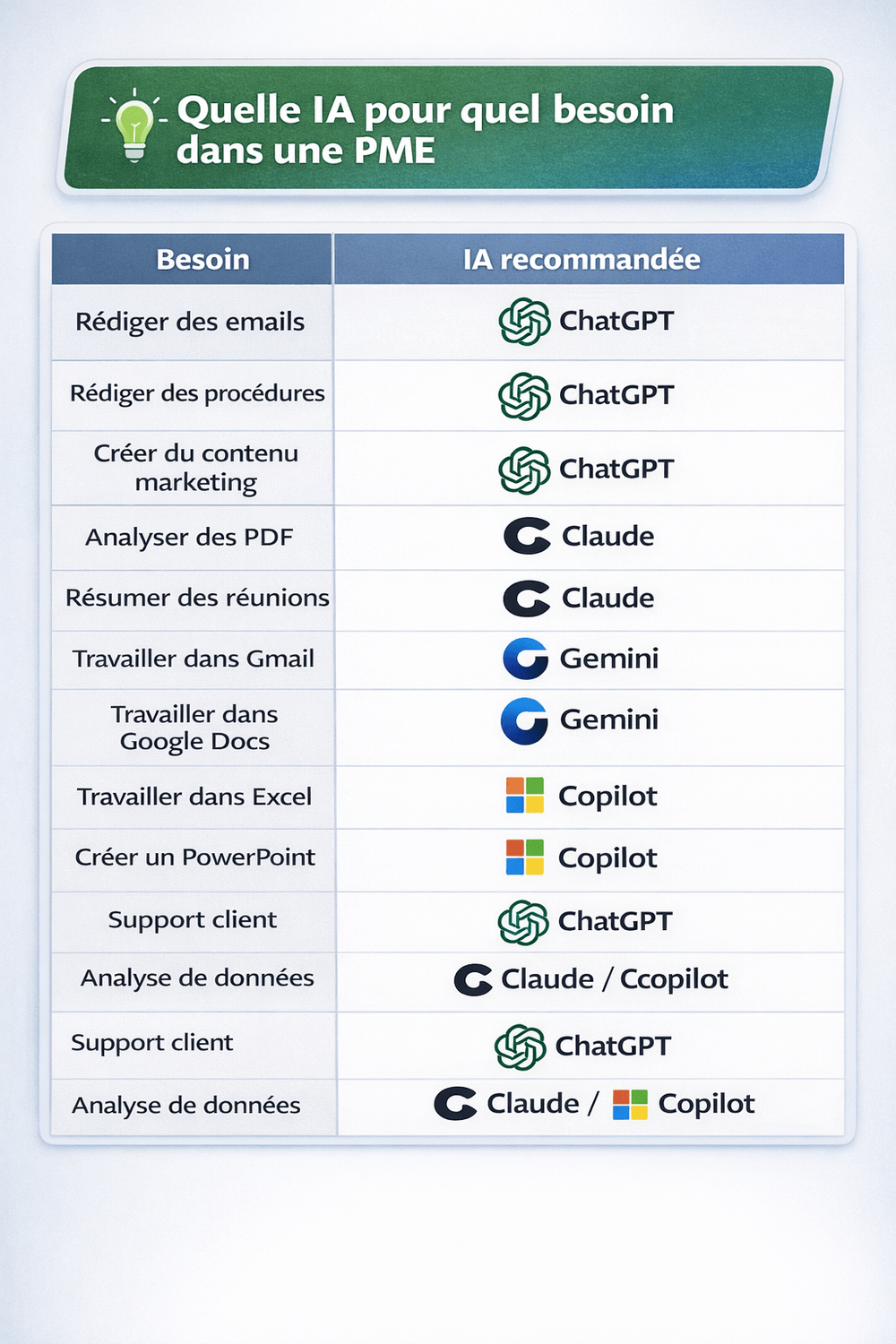 La meilleure stratégie n’est pas de choisir une seule IA, mais d’utiliser plusieurs outils selon les besoins de l’entreprise.